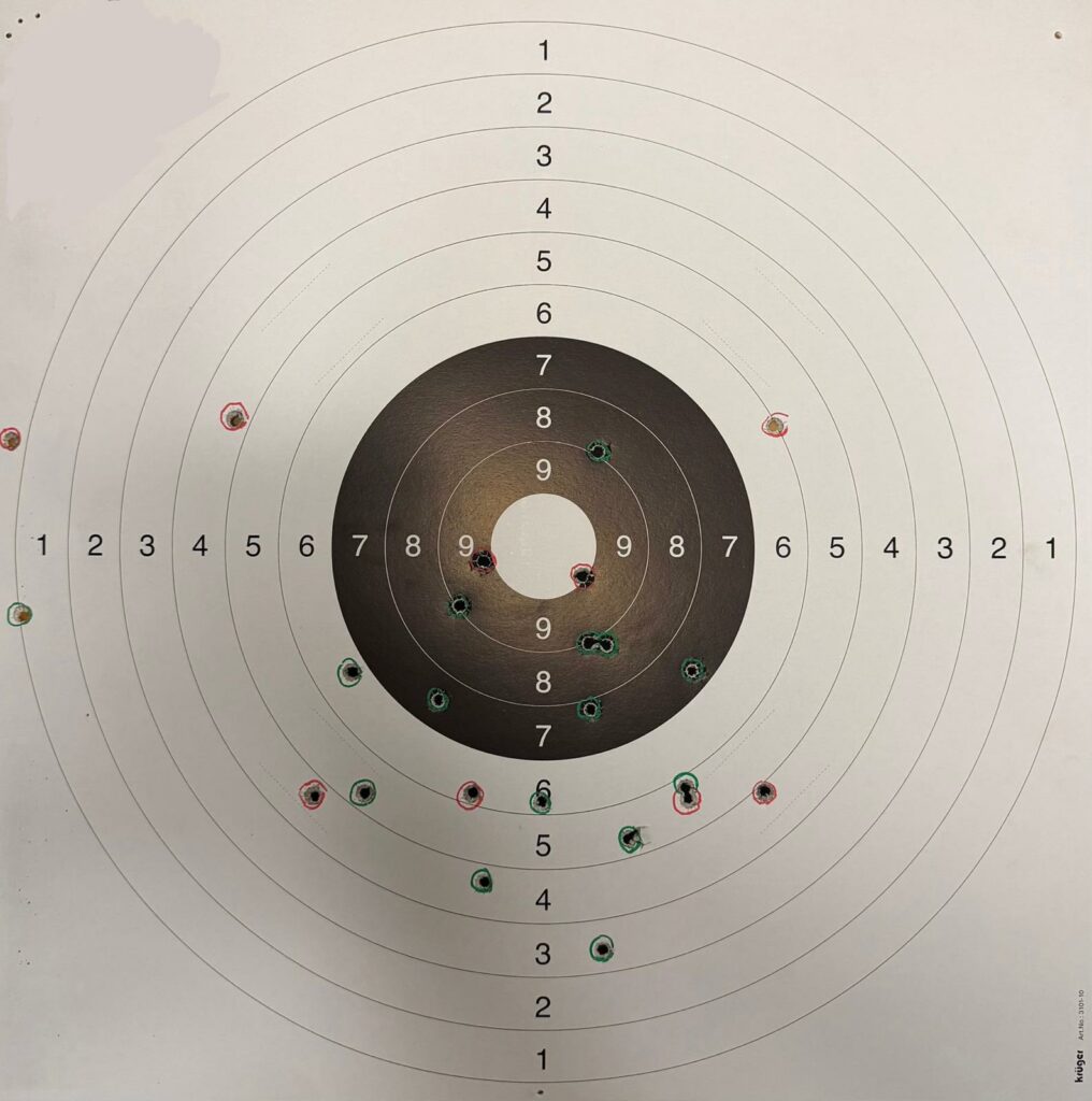 Résultat à 2 mains à 25m (il faut enlever les ratés !)