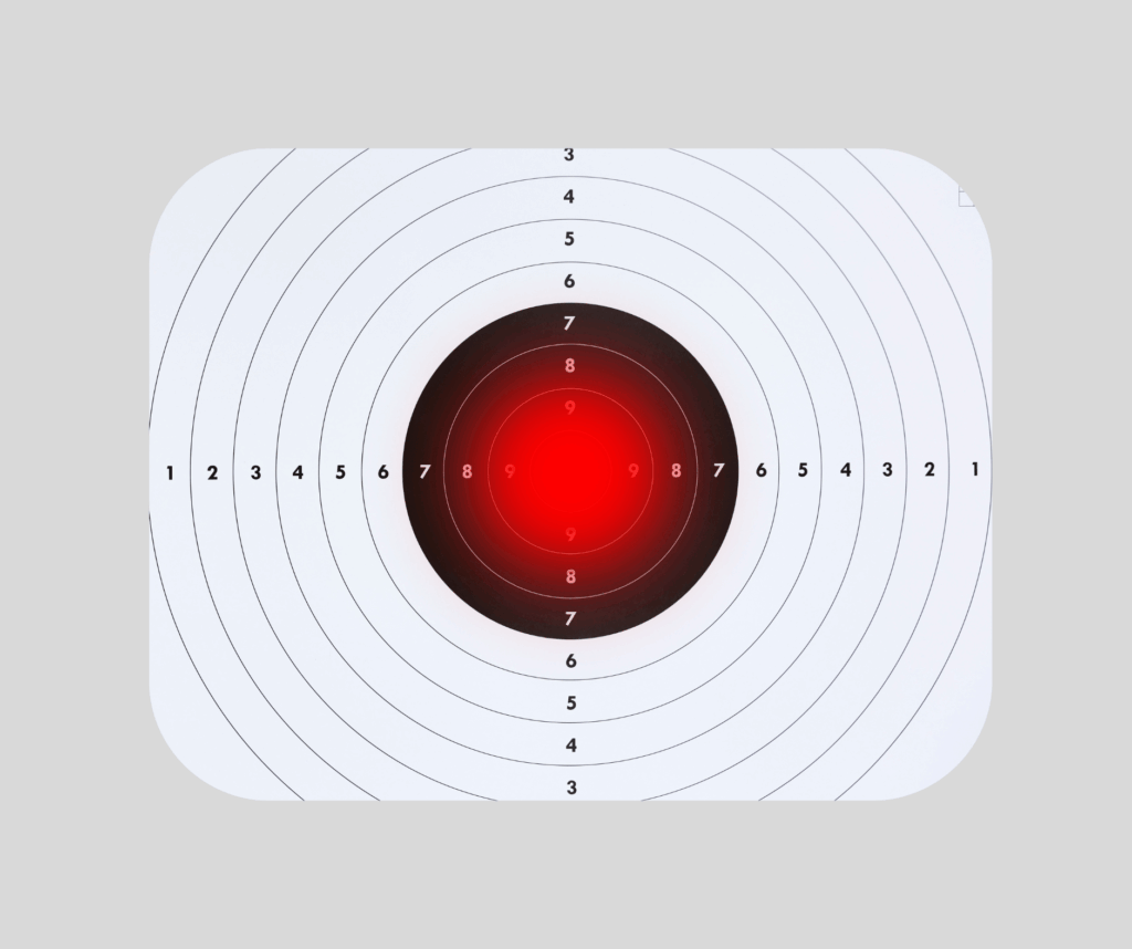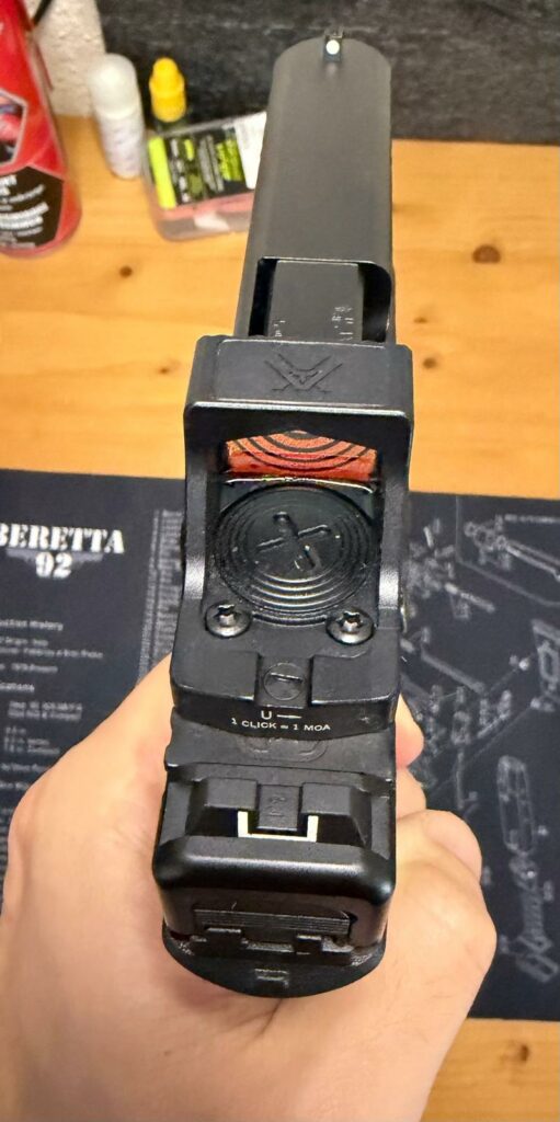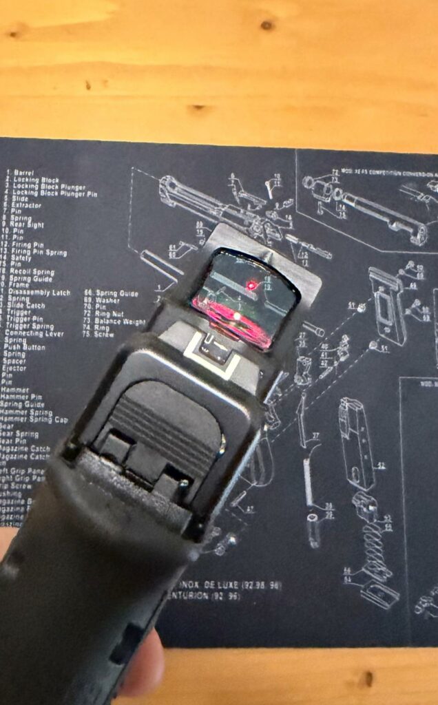 Vue avec un red dot en 3 moa en cible à 25m (le point rouge ne couvre pas l’intégralité du noir).
